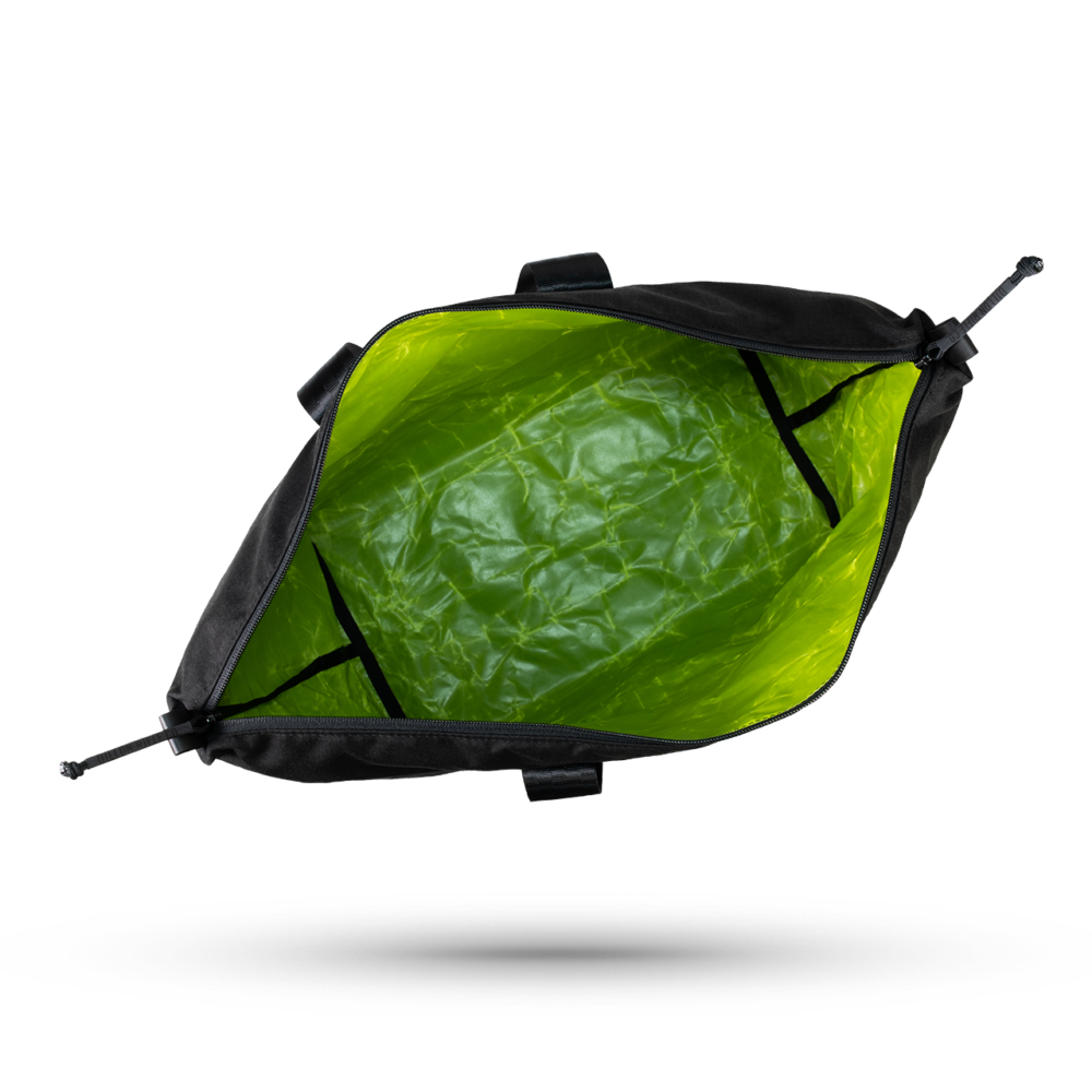 -  Basic Black Exterior w/ Neon Green – Coated Woven Hi-Vis Dyneema® Interior