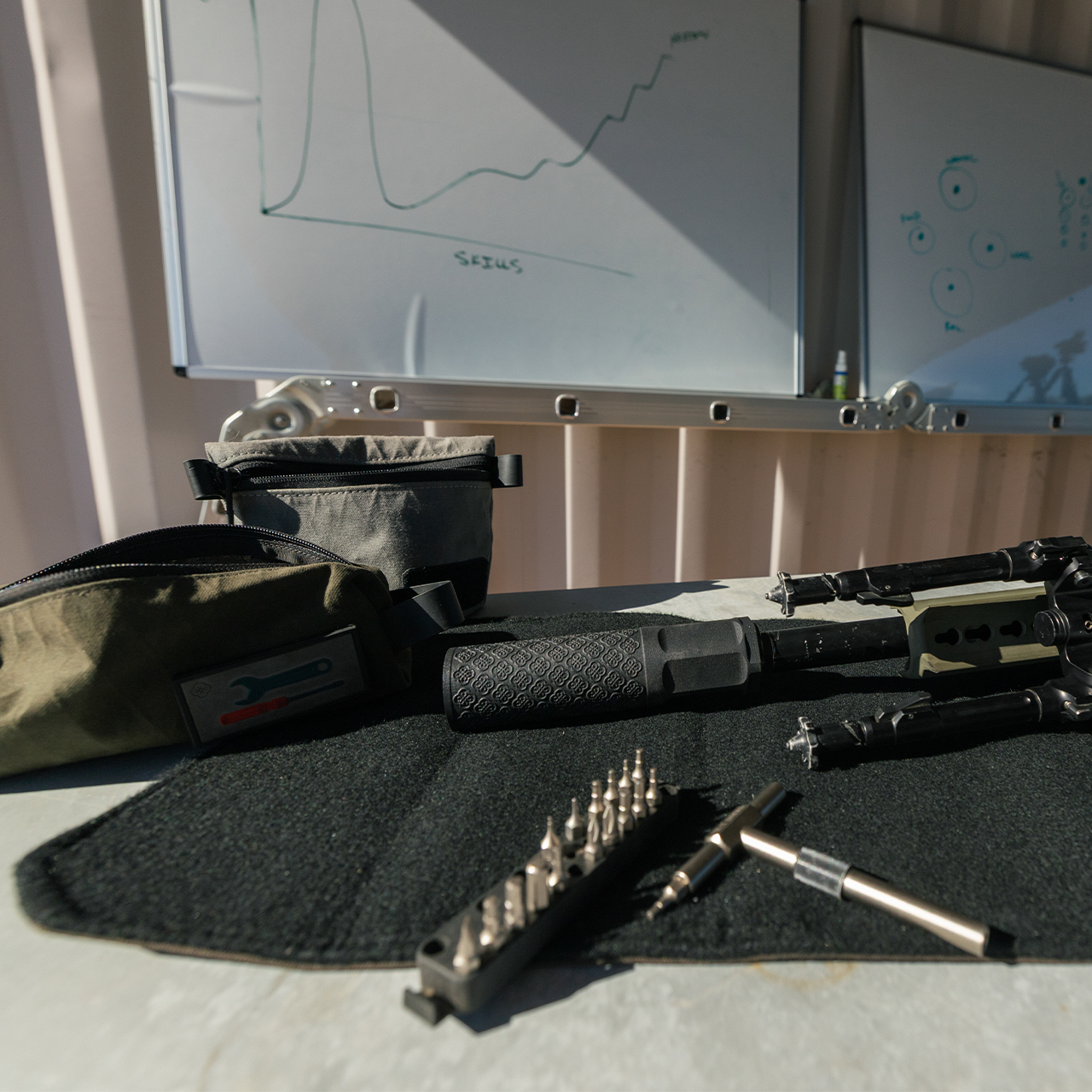 If you have heard of our JalapeƱo, the Tortilla is just an open face version to protect your table or your gun when you set it down. When you shoot a lot and your gun gets hot, placing it down on your shooting bench can often lead to undesired results. We have melted many plastic folding tables or nylon webbing gear without thinking about it. This is why we created the tortilla. We adapted the technology used to move a hot Minigun to protect your gear. With the carbon felt liner, we could dump 3000 rounds in a minute or so, slip The felt lined JalapeƱo over the barrel group, pull the gun off the mount and stow it right away.